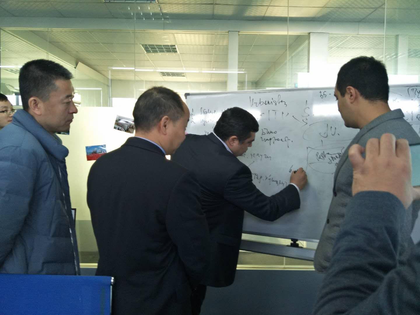 The head of the delegation, General manager of the company, was explaining their project plan. All the SHJUMP staff were listening attentively.