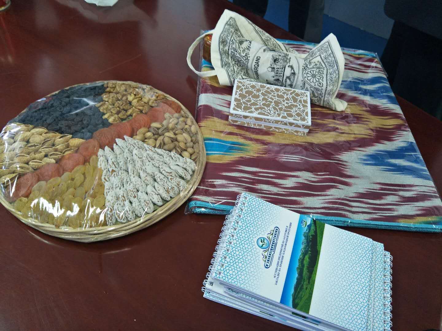 The last part of the meeting was exchanging gifts. The delegation brought lots of exquisite with Uzi. characteristics, such as scarf , notebooks, caskets and nuts etc.