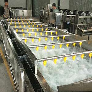 Our fruit and vegetable spray washing machine is suitable for all kinds of fresh fruits, vegetables, salted vegetables, fungi and seafood. The cleaning machine in the process of conveying, strengthen the function of spray cleaning, before the completion of material after cleaning, after spray cleaning, the function of this procedure is remove dirty on the surface of the material to replace, improve the cleaning effect of material, at the same time, external cleaning spray water on to secondary material after cleaning, the water flow into the water bath slot, added to replace water bath tank washing water, maintain the cleanness of waterbath the internal quality, improve the utilization of clean water, and increased the cleaning effect.