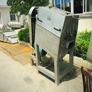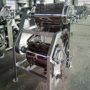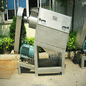 Remove the core of peaches and apricots by rotating the roller and rubber roller, and get the lumpy flesh. The spacing between the two rolls depends on the fruit. The fruit is fed into the hopper by the former device, which is driven by the crank-link mechanism to push the fruit into the two rollers. The two rollers turn against each other, and most of the flesh of the fruit is pressed into the crevices of the toothed rolls. The fruit nuclei are squeezed in the elastic rollers, and the comb plates remove the pulp from the gaps between the teeth. The core of the flesh of the flesh enters the washing part to complete the separation.