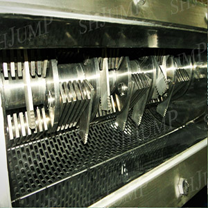 The machine is composed of machine door, hammer, screen, main shaft, body and so on.The whole machine includes the hopper, main engine, frame, transmission parts, etc. The motor is driven by a pair of belt wheels at the time of work, and the spindle has three groups of the hammer. Material from the elevator free fall into the hopper, chopped by high speed rotating hammer, due to the effect of centrifugal force, the material after broken particles by the waist shape mesh fall into the hopper, and then by another with screw pump pump into the next process.