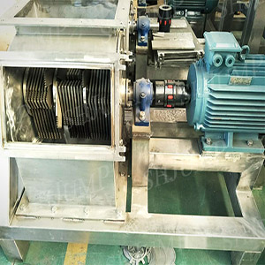 The fruit crusher is used for the initial crushing of selected fruits and vegetables. It is suitable for the crushing of fruit and vegetable raw materials such as apples, pears, carrots and potatoes. It has the characteristics of novel structure, compact, energy saving, large production capacity and wide application scope. It is made of high quality stainless steel, which is in line with food hygiene. Using Italian technology, multi-group cross blade structure can break the material into small diameter particles to facilitate subsequent operation. The crushing size can be adjusted according to customer requirements or specific project requirements. Compared with traditional rat cage crusher, the extraction rate of raw juice was 2-3%.