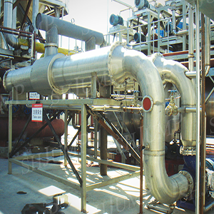When material by screw pump into the preheater pipe, open the steam valve is connected to the heater, into steam, under the effect of pump driving force, the material evenly distributed in each evaporation tube, heat exchange with the outside tube heating steam or hot water at the same time, material liquid is heated rapidly, after the material reaches a certain temperature, discharge into the next process or in cooling period.