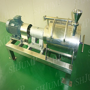 Motor through a belt drive, installed on the spline shaft of scraper high-speed rotation, when after the broken fruit through the inlet into the machine, the block pulp tray is to send the material evenly row to scraper and screen mesh. Due to the effect of rotation of the scraper and the existence of the lead Angle, make the material move along the cylinder to the outlet, the moving track of spiraling, material on the scraper and the effect of the centrifugal force in the process of moving between cylindrical screen was chopped, juice and meat is (slurry) from the mesh through into the next procedure, beater for tandem repeat the above process (double), such as the skins and seeds from the slag discharge, in order to achieve the purpose of automatic separation. By changing the screen of different specifications and adjusting the Angle of the scraper, the different slurry speed can be changed to achieve satisfactory results.