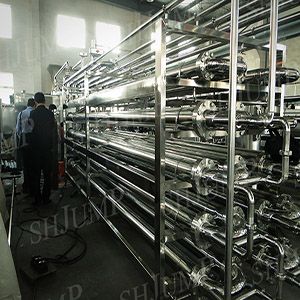 The equipment consists of material tank, pump, tubular heat exchanger, retainer, superheated water system and control system and so on. The design of heat exchange by heat regeneration technology has greatly improved the heat transfer efficiency and energy-saving.